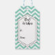 Pastell Turkos & Vit Chevron Bröllopsfödelsedag Presentetikett