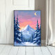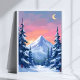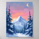 Pastell Vinterberg Vattenfärg Landskapsaffisch