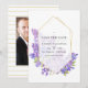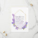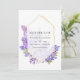 Vattenfärg violett - lila bröllopsinbjudan med en gyllene herbariem geometrisk ram som kan anpassas till dina evenemangsspecifikationer. Perfekt för alla teman eller trädgårdsbröllop.