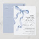 Pastellblå Coquette-båge Bröllopsdusch-inbjudan Vykort