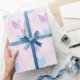 Pastellblå Lila Tulips & Elegant Geometrisk Rosa Presentpapper