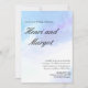Pastellblå och lila akvarell flödesskriftstil bröllopsinbjudan