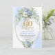 Pastellblå vit peonblomma guld 60-årsdag inbjudningar