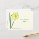 Ett vykort för lätt gult med botaniskt täckblad i pastel färg (Narcissus pseudonarcissus) och anpassade (överst och grund): perfekt att följa med en gåva eller skicka till din bästa vän. På baksidan finns det en vild daffodil i konst! Daffodil är marsblomman, blomman av Pisces och Aries och har symboliska betydelser som återfödelse, förlåtelse, kreativitet, energi och livskraft.