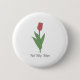 En knapp med en illustration av botaniska röda tulpanblommor i pastel färg och en anpassade: perfekt för en födelsedagspresent. Tulip är aprilblomman, blomman av Aries och symboliskt betyder perfekt och djupt kärlek.