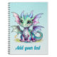 Möt vår vänliga babydrake på en drömsk akvatisk blå bakgrund med mjuka vita prickar. Denna magiska pastellfärgade anteckningsbok är perfekt för barn som älskar fantasivarelser och äventyr. Personalisera med ett namn för en extra speciell touch!
