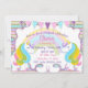 Få redot för ett magical och elegantfödelsedagfirande med denna dyrbara pastellfärgade glittery inbjudan. Särdrag två förtjusande unicorns och en glittery bakgrund för pastellfärgad regnbåge. Details är skriftlig i koordinerande rosa- och lilafärger. Vara värd en förtrollande födelsedagsfest med denna fantastiska unicorn-/Unicornio inbjudan.