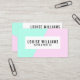 Denna är en modern visitkort med en neonpastellfärgintrig. Bekläda har din namn och ockupation i en vit att boxas på lila rosor och en grön bakgrund för mint. På baksidaen finns det utrymme för ditt specificerar, och en rand besegrar sidan med att matcha färger. Detta skulle är perfekt för vem som helst som önskar en rengöring och en modern look med en vridning.