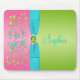 Denna gladlynt tittar pastellfärgade rosa, blått och gröna blom- mousepad för limefrukt har ett fauxband och kristallen prydd med ädelsten brosch. Skräddarsy den med ditt egna namn, monogramen eller annan text.