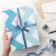 Nätt blått- och vitsparrerand som slår in papper, perfekten för födelsedagsfester, baby shower och mycket mer.