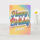 Ge din roliga, bubblande vän eller älskade en födelsedags hälsning som perfekt matchar deras livliga personlighet! Detta glada födelsedagskort har en färgrik pastellregnbågsfärgad bakgrund med trendiga, retro 3D-bokstäver som stavas "Happy Birthday". Framsidan innehåller en lättredigerbar textmall så att du snabbt kan lägga till mottagarens namn för den speciella känslan. Inuti väntar ett sött, helt anpassningsbart meddelande mot en varm persikofärgad bakgrund. Använd Zazzles intuitiva designverktyg för att enkelt anpassa textmallarna med dina egna invändiga skämt, hjärtliga önskningar och en anpassad avslutning. Perfekt för en dotter, bästa vän, syster eller någon som ger en färgklick i ditt liv.