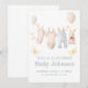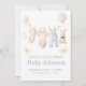 Fira den kommande ankomsten av en liten en med denna söta babyfest-inbjudan som har en mjuk pastellutdesign. Fint illustrerad med babyprättlar som hänger på en tvättlina – små kläder, halsdukar och filtar – är detta söta akvarellinspirerade kort perfekt för blivande föräldrar som älskar ett mjukt, lekfullt och tidlöst tema för babyfesten.