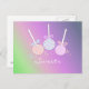 En söt design av tre pastellfärgade cake pops med snygga band och slingor. En skuggad bakgrund i grönt, mauve och lila.