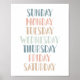 Pastellfärgade veckodagar klassrumsdekoration poster