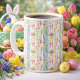 Pastellfärgat påskrandigt mönster • Kaniner, kycklingar, ägg och vårblommor Kaffe kopp