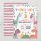 Pastellflickas Dinosaurie 3-års Födelsedagsinbjuda Inbjudningar