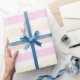 Den här inslagningen papper med mjuka nyanser av gult, persika och rosa är perfekt för att lägga till ett unikt utseende på presentfigursättning för en babydusch, födelsedag eller annat tillfälle.