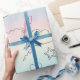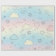 Mjukt akvarellmönstrat inslagspapper med pastellfärgade hjärtan, drömmiga moln, stjärnor och lekfulla virvlar i lugnande toner. Lätt, luftig och fantasifull estetik. Perfekt för barn, baby shower, barnkammarteman och de som älskar söta, lugnande design.
