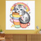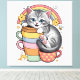 Omfamna charmen hos "Pastellkloar & Regnbågssippor", en förtjusande design med en söt grå kattunge inklämd bland en trave färgglada muggar, allt mot en mjuk pastellregnbåge. Denna fantasifulla illustration fångar essensen av kawaii-kultur och kombinerar lugnande pastellfärger med lekfulla element som leende stjärnor och surrande bin.