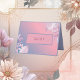 Nära bröllop med romantiska klisterkort för Bröllop bord, perfekt för att lägga till en liten charm för elegant till din bord-organisation. Varje kort har abstrakt pastel cherry blommar sakura och en dammig blå och rosa gradient färg. Anpassa firande genom att anpassa varje kort med bordsnumret. Hobinishop