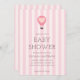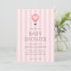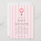 Kortet babyduschinbjudan med en pastellbakgrund med rosa stripe parad med en handritad luftballong och ett serif-teckensnitt i eleganten där din personlig är skriven i. Du hittar fler matchande produkter från den här samlingen i vår butik.