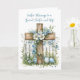 Det här Påsk-kortet är speciellt utformat för en pastor och hans fru. En rustik kor som är försedd med mjuk blåa blommor och som är försedd med ett vitt staket skapar en serenbakgrund som talar om säsongens skönhet. Innerbudskapet ger ett uppriktigt tack för deras hängivna partnerskap i tro och firar sin resa med varmt önskemål för förnyelse och glädje.