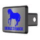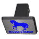 Anpassa detta stiliga släpvagnshölje med grafik av en blå silhuett av en häst och blå fet text, vid grund. Bakgrunden görs i ett borstat aluminiumutseende. Gör en underbar presentidé till vilken hästälskare eller ägare som helst.