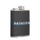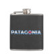 Känt skriftligt för Patagonia i Patagonian stilsort på en mörk vägg.