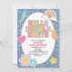Hello Double Digits! Förberedande patch-deglar 10-årsdag inbjudan med regnbåge, hjärta och fredstecken.