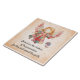 Syning av den keramiska plattan med söt illustration av en änglar som är klädd i ett färgstarkt lappsmotiv och blomdekoration. Det går att redigera för att anpassa din egen text.