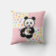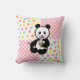 Den förtjusande Pandababytecknaden kudder i rosor tonar. Denna förtjusande Panda slickar smaskig glass!! För Pandafläktar och ungar! Den lyckliga och gulliga Pandatecknaden skapade vid Naomi Ochiai från Japan. Rosa gingham och mycket litet blommapatchworkmönster. Du kan tillfoga text.