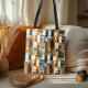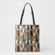 Denna stilrena patchwork geometriska toteväska har rika hösttoner av orange, blå och blomaccent. Perfekt för de som älskar höstmode, denna väska kombinerar modern design med klassiska quiltmönster. Idealisk för daglig användning, shopping eller som en trendig accessoar till din höstgarderob. Personalisera monogrammet för en unik touch.