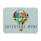 En luftballong för lapptäcke av blommigtar flyter på en blek blå himmel med en påminnelse till alla till "äventyr more"
