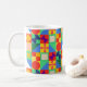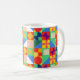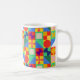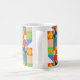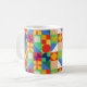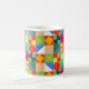 Mugg har en Bauhaus-design av rutor med udda former inuti, som upprepas över designen.