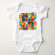 Den här karosseri för baby har en Bauhaus-design av kvadrater med udda figurer inuti, som upprepas över designen.