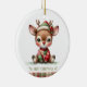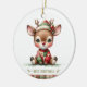 Patchwork Reindeer First Christmas Keepsake Photo Ornament, change the text and photo yourself when ordering