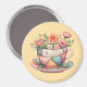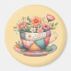 Patchwork Tekopp med Whimsical Flowers Magnet