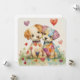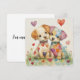 Vattenfärg av lapptäcken-valpar med hjärtan till Alla hjärtans dag. Söt text, söta kort.