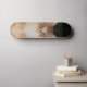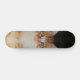 La patineta tiene un diseño específico. En este caso, la patineta está adornada con la imagen de un gato de color amarillo y blanco. La característica principal del diseño es que el gato esta en una posición alerta o atenta. La descripción del diseño es la de un felino con actitud amigable y expresivo, ya que se destaca la atención del gato. En resumen, se trata de una patineta que presenta un diseño visualmente atractivo con la representación de un gato amarillo y blanco en una actitud de alerta.