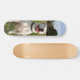 La patineta presenta un diseño específico, el cual representa la imagen de un pitbull blanco. En este diseño, el pitbull está representado en una posición sentada, y en el fondo un entorno de campo. La patineta, por lo tanto, incorpora un elemento visual distintivo al mostrar la imagen de un pitbull blanco en una pose relajada en un entorno natural. Este diseño brinda un toque único y personalizado a la patineta, fusionando el mundo del skateboard con la estética y la temática relacionada con el pitbull y la vida en el campo.