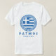 Patmos, Grekland distressed design herr vit T-shirt med Greklands flagga inuti en grekisk nyckel-mönstrad cirkeldesign med namnet på ön skrivet i grekisk stil. Denna T-shirt är idealisk för dig att ha på dig medan du njuter av din semester på den vackra grekiska ön Patmos. Du kan också ge denna som en present från Grekland till någon som kommer att gilla denna T-shirt.
