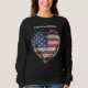 En dam amerikansk Flagga Patriot Sweatshirt med hjärtformade amerikansk Flagga och budskap: Forever Starong. Avslappnad tröja med patriotiskt budskap. Visas i Black.