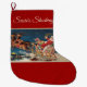 Julstrummet med Patriotic Jultomten i hans sal fylld med presenter och amerikansk flagga som flyger genom natten. Framsidan skrivs bara ut med röd panel på baksidan.