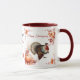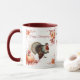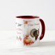 Thanksgiving kaffe eller te mugg med vårt patriotiska Turkiet som önskar ett Happy thanksgiving och Välsigna dig Amerika.