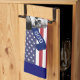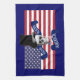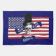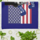 Lustigt, stolt patriotisk amerikansk flagga med en roligt vintage gothic skalle med Abraham Lincoln stil top hat och en röd vit och blå amerikansk stars och stripes-stjärna, spängad banderoll flagga , med texten från Välsigna dig. stolt fira thanksgivingen eller 4:e July independence day i stil.