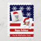 En patriotisk, ljusröd, vit och blå fotokollage Julens personlig, modern fotomall Julafton-kort inspirerad av det amerikanska flagga, där snöflingor under vintern ersätter stars och stripes flagga stjärnor, lägger till dina egna favoritbilder av familjen stil och helgdag för att hälsning ditt eget unika patriotiska julhälsningskort. Lägg enkelt till dina egna foton från Inagram stil i mallarna.