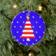 Denna patriotiska amerikanska julprydnad har en blå bakgrund med vita stjärnor och ett rött och vitt rand Julgran. Ett underbart sätt att visa din patriotiska amerikanska anda på Julgran! Upphovsrätt av Henis