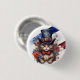 A charming patriotic illustration of a fluffy cat dressed in classic Americana style. The cat wears a tall Uncle Sam–inspired top hat decorated with stars, paired with a red bow tie, and is surrounded by elegant red, white, and blue florals with delicate gold accents. Rendered in a soft, painterly style with rich detail, this artwork blends whimsy, vintage charm, and national pride—perfect for festive décor, seasonal products, or cat lovers who enjoy a playful patriotic twist.