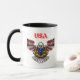 A bold and patriotic illustration featuring a bald eagle in flight, a strong national symbol of the United States. The eagle's wings are designed with elements of the American flag, using red, white, and black colors and white stars against dark feathers. The graphic has a distressed, stylized look, contrasting with the realistic depiction of the eagle's head. The text "USA" is displayed prominently in red at the bottom of the image.
