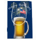 Amerikanska flagga och sparkler i en mugg av öl med fyrverkerier i blått. Bakgrunden till färg kan ändras.